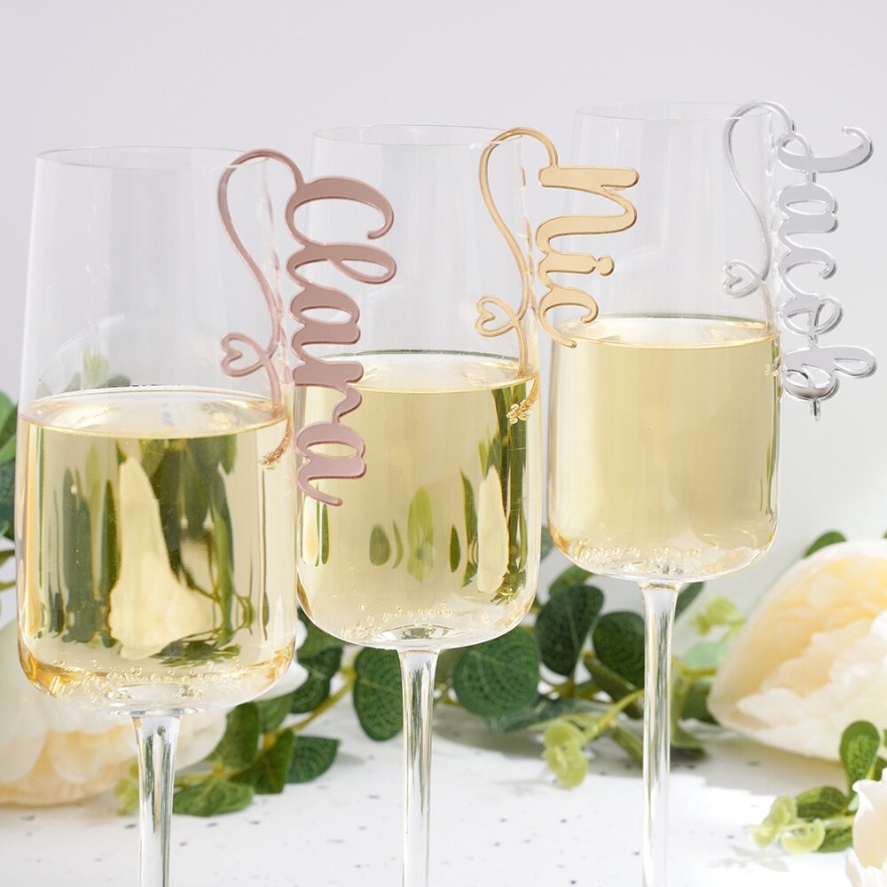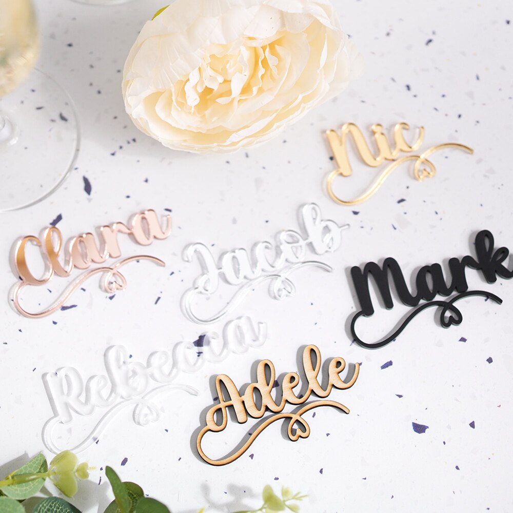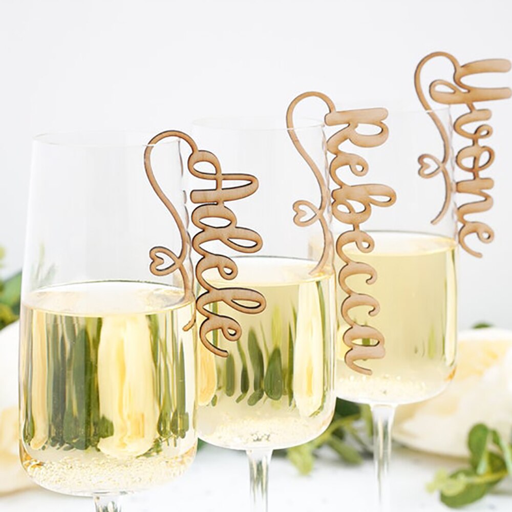 - 20Pcs Personalized Drink Glass Place Cards Name Tags Wedding Natural Wood Custom Wedding Champagne Escort Card